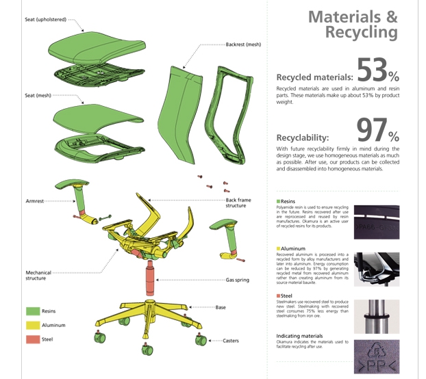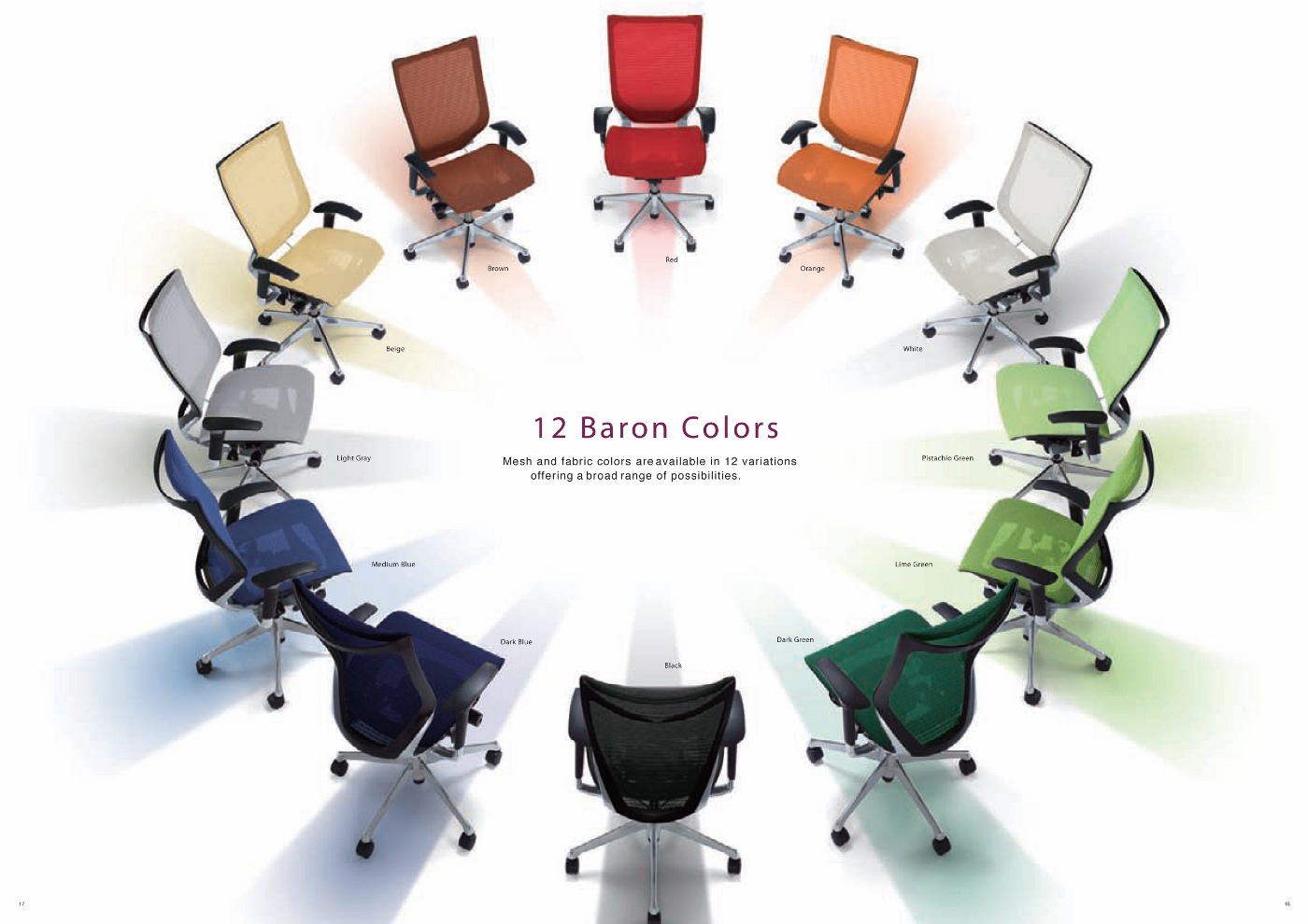 Mesh and fabric colors are available in 12 variations offering a broad range of possibilities.