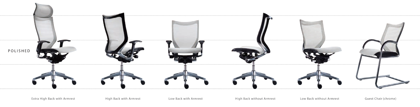 You can select frame and seat combinations and choose the color variation that best fit your worksplace needs and individual taste. You can select a high back or a low back as well as an extra high back variation with attached headrest. You can choose a chair with or without armrest. Guest chairs and high position chair are also available.