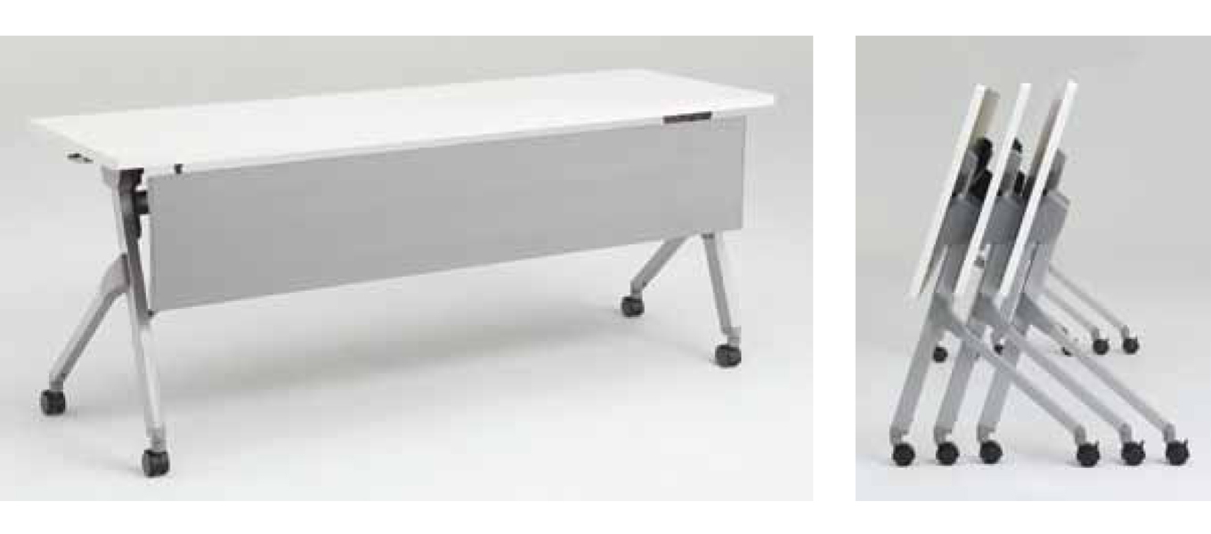 New folding table Flaptor is designed as parallel nesting table. It realizes space saving and beautiful storing. Square pipes used for leg and frame creates Luxurious design image. It also contribute to stability and toughness. Flaptor is fit for not only office applications also in public conference space, higher education, and more.