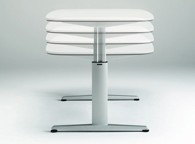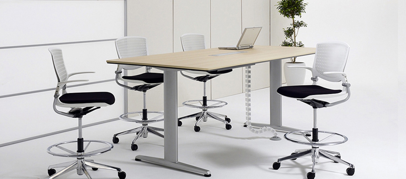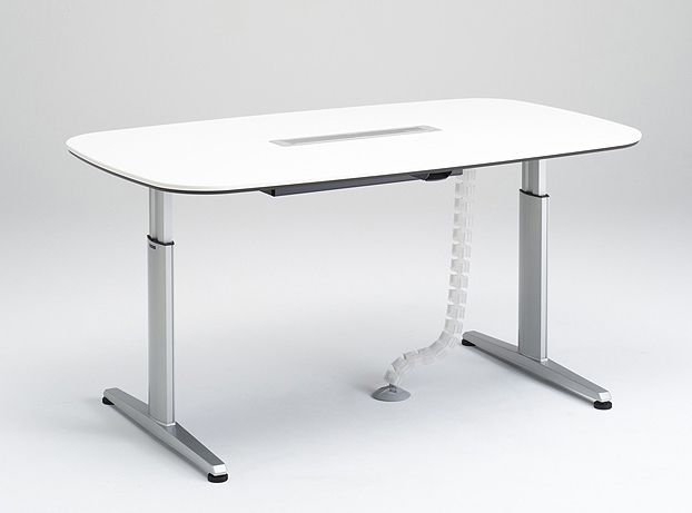The level of the surface can be adjusted to be between 700 mm and 1000 mm from the floor. The benefits of this are versatility and comfort. It can be altered to suit any style of meeting and to adjust to the style of any particular user so they can work without impediment.