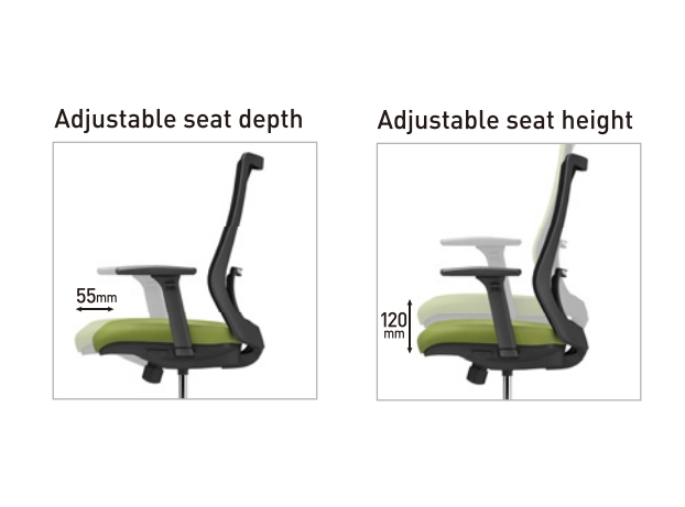 Adjustable Seat Depth. You can adjust the depth of the seat by operating the lever on the left of the seat (stroke : 55mm).