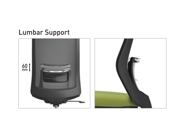 Lumbar Support. It firmly grasped the lower back can be adjusted within a vertical range of 60mm to match your physical requirement.