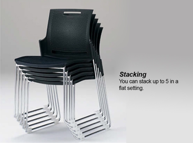Stackable up to 5 chairs. With troley, stackable up to 17-23 chairs